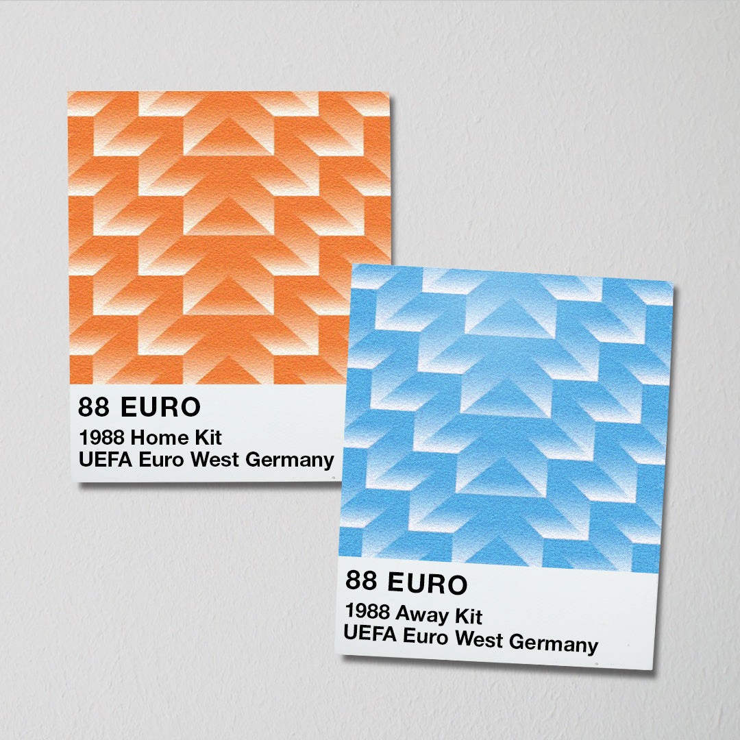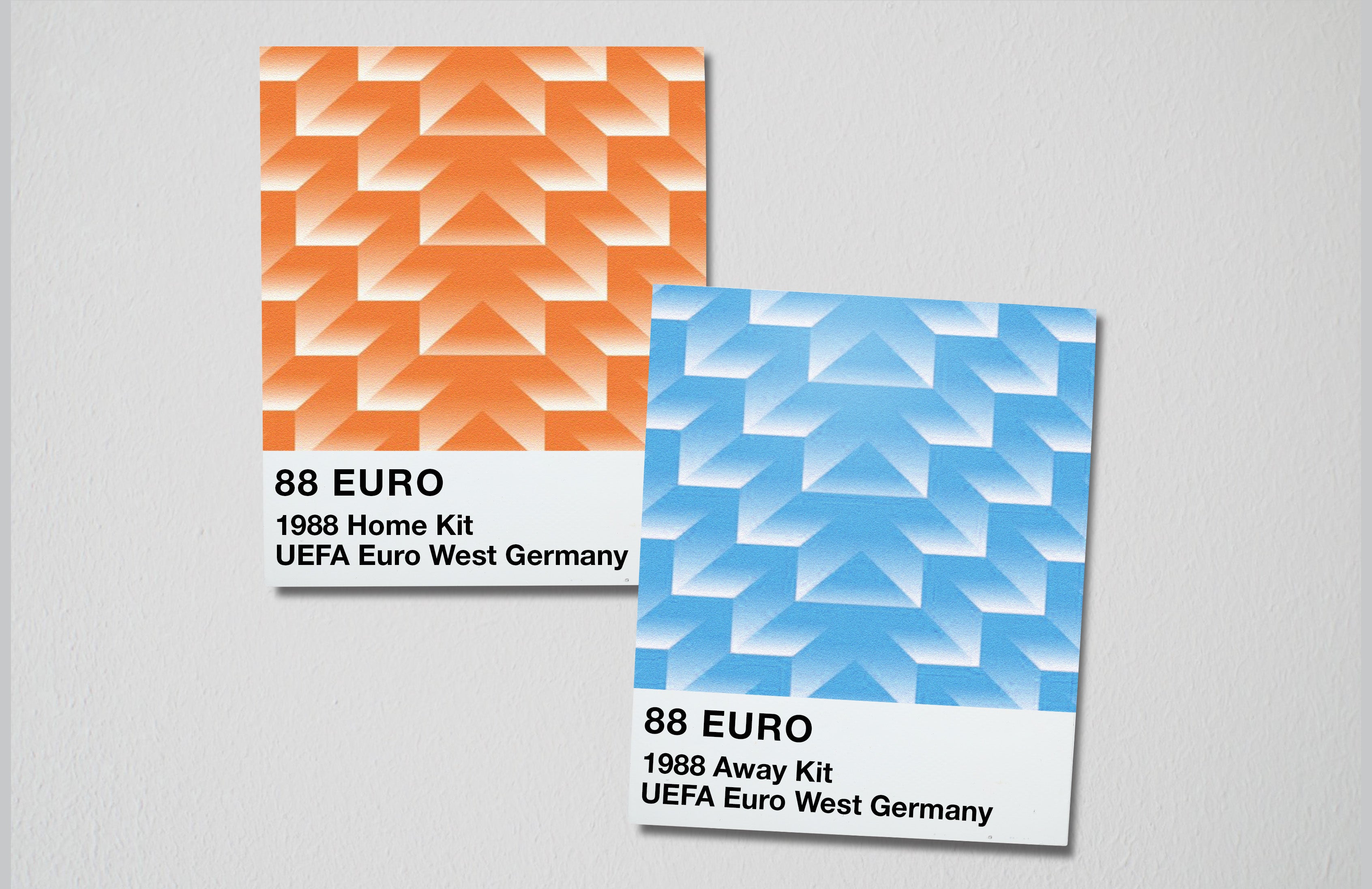 It laid on a blue gradient on a geometric design – perhaps a homage to the 1988 UEFA Euro kit?
