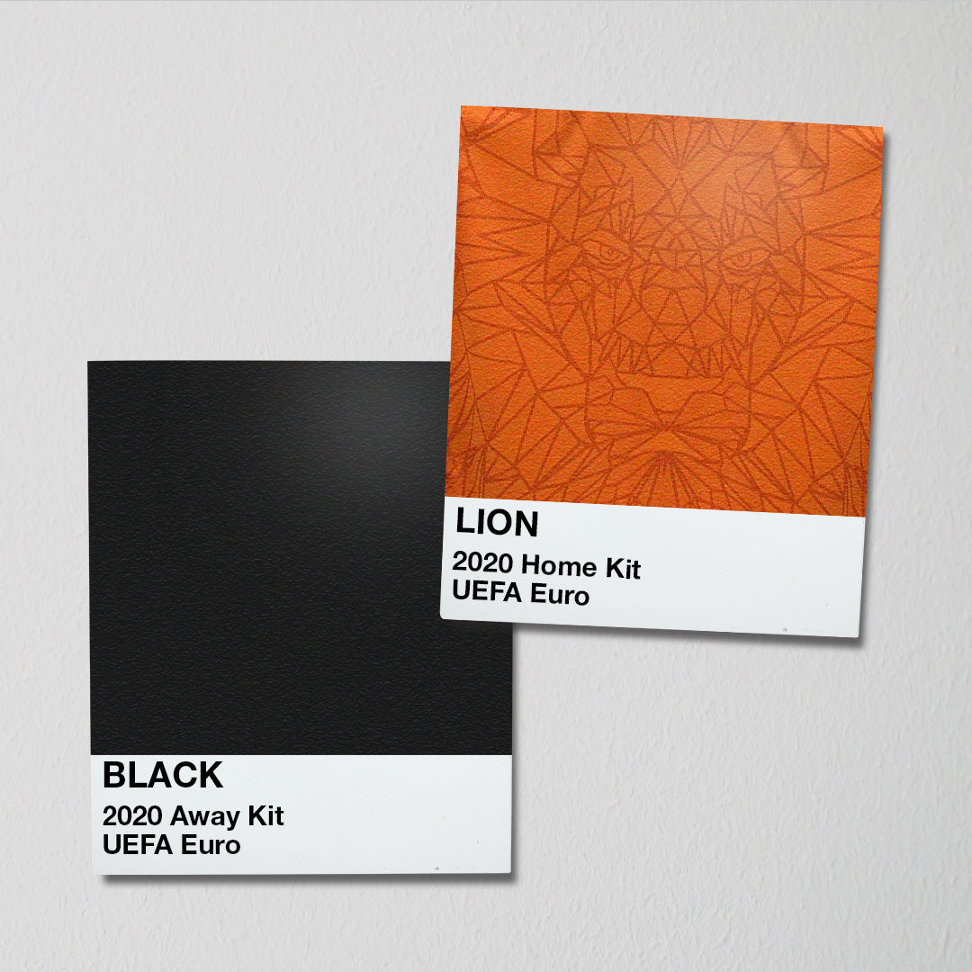 The most recent kit – and worn right now in the UEFA Euros – features the Away jersey in black and the Home jersey in orange.