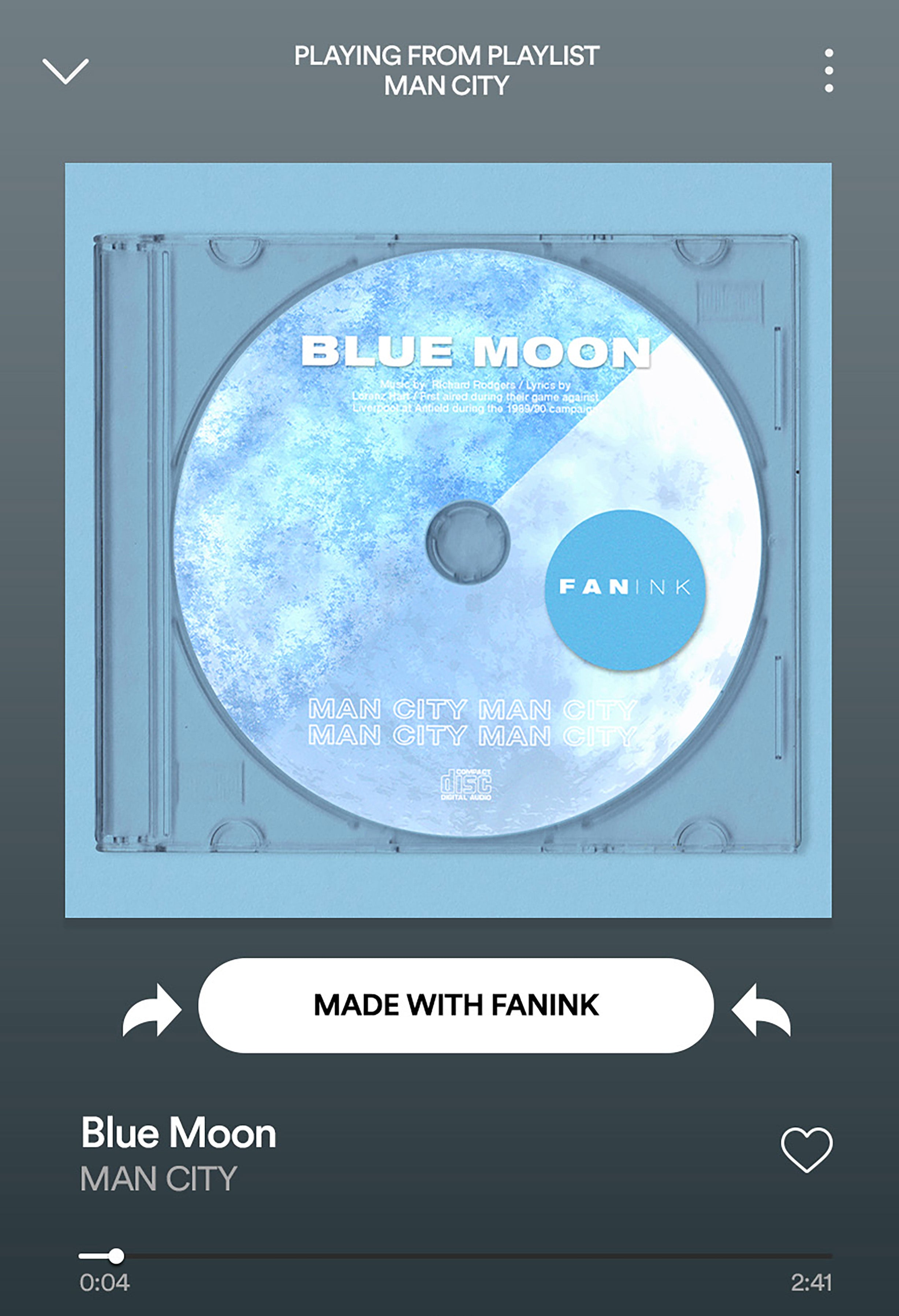 “Blue Moon” - a composition by Richard Rodgers and lyricist Lorenz Hart, is first thought to have been first aired by the City faithful during their game against Liverpool at Anfield during the 1989/90 campaign. During the 80s, it wasn’t uncommon for football clubs to adopt hit songs onto the terraces of football grounds, no doubt with the hopes of some sort of osmotic transmission of good spirits. However, “Blue Moon” is different from many other club tunes in that it is uncharacteristically melancholy, which stands in contrast to the ripping and roaring anthems used to inspire a team to victory.