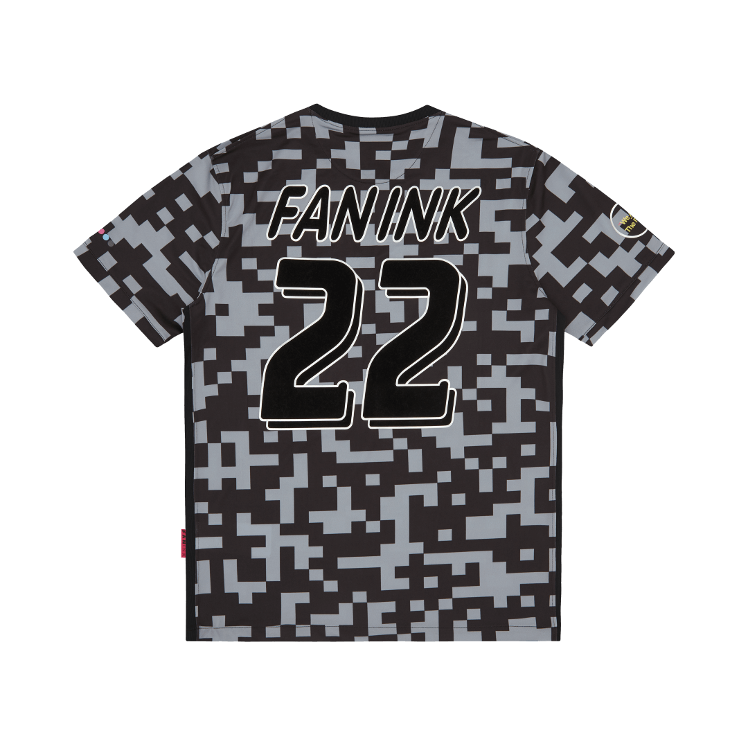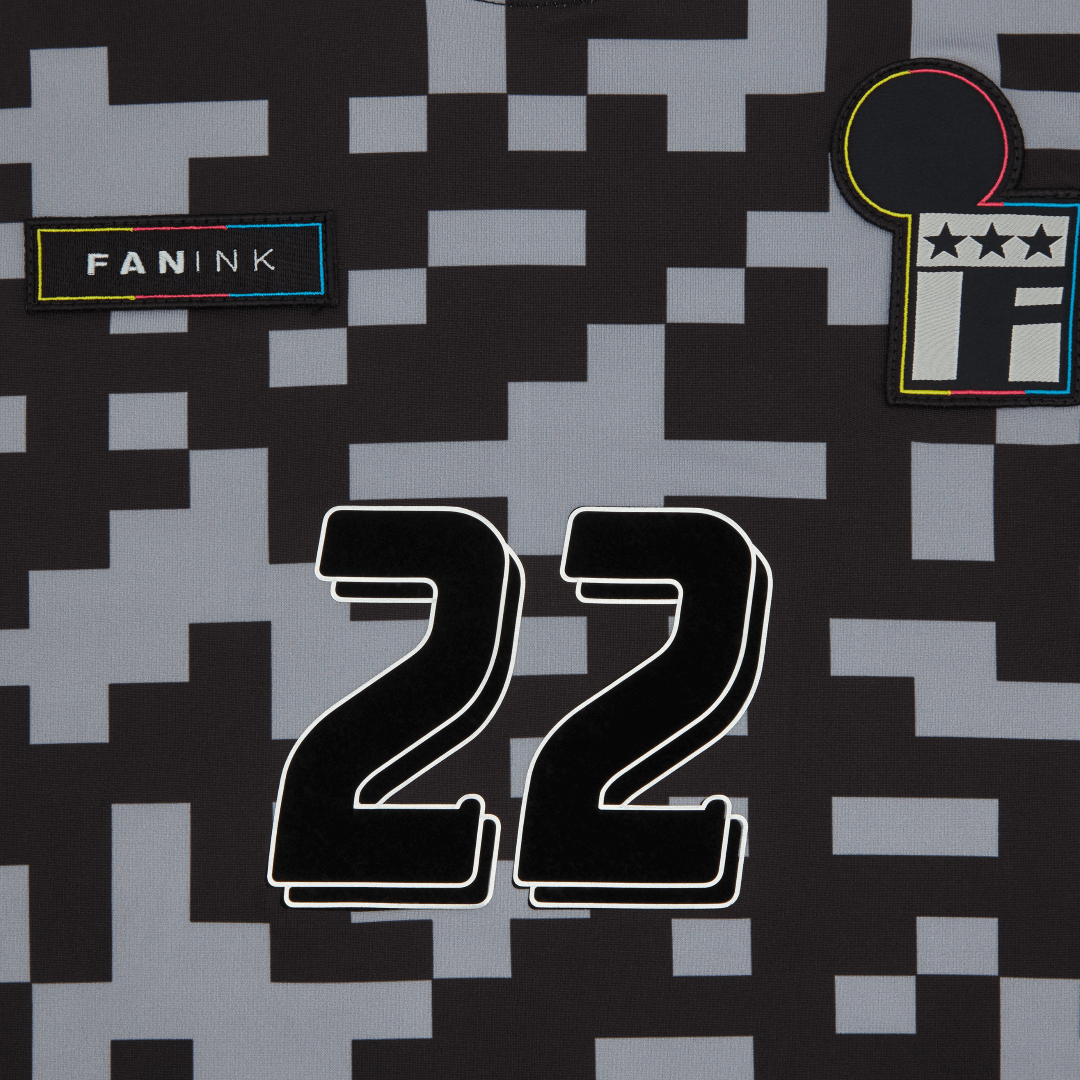 Fan jersey. Digital camouflage print. Fan Ink patches at chest. 22 number screen printed in front and back. Fan Ink branding screen printed on both sleeves. Fan Ink label at side. Made in Portugal.