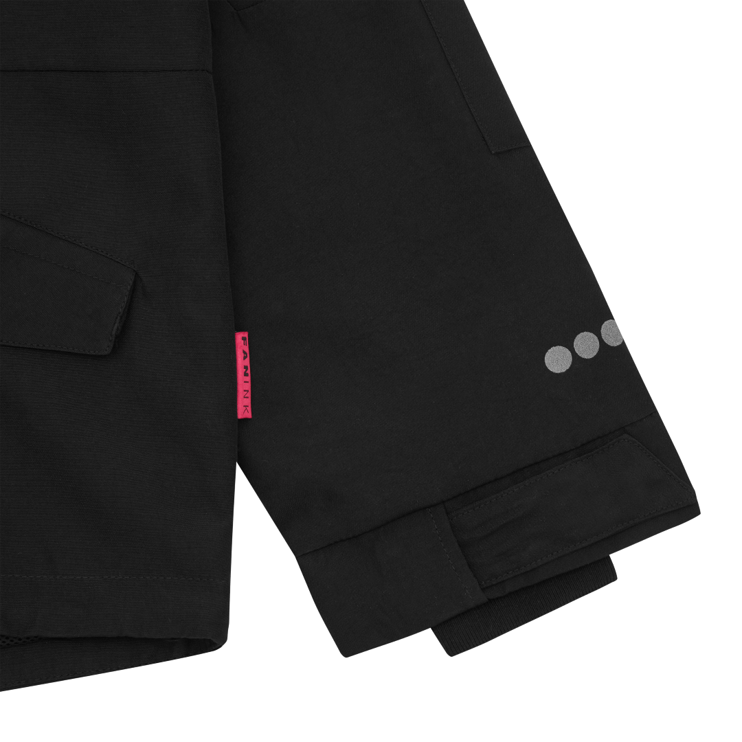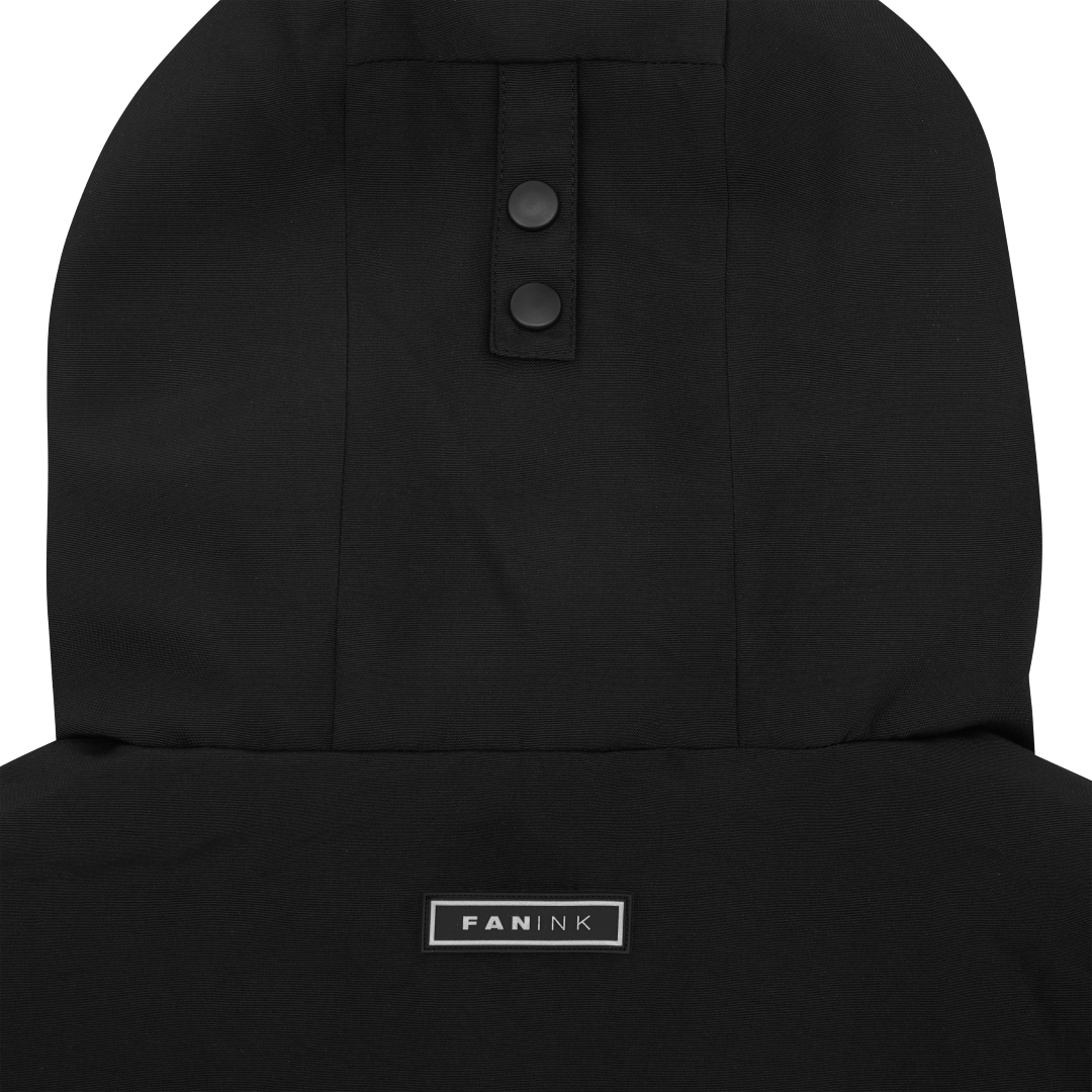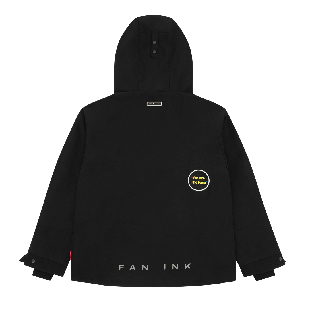 Adjustable drawstrings at hood and hem. Dual waist pockets. Ribbed cuffs. Mesh and polar fleece lining. Fan Ink 3M reflective print at right chest, left sleeve, and back hem. Fan Ink patches at left chest and back. Fan Ink woven label at side. Made in Portugal.