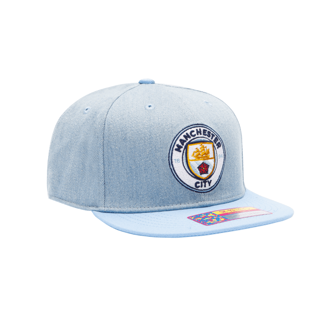 The Nirvana is a nineties throwback, lightweight washed denim snapback hat with a contrast peak, button and eyelets. The crown features a 3D full colour team embroidered crest. Additional details include a back panel team name embroidery and team colour digi loop label.