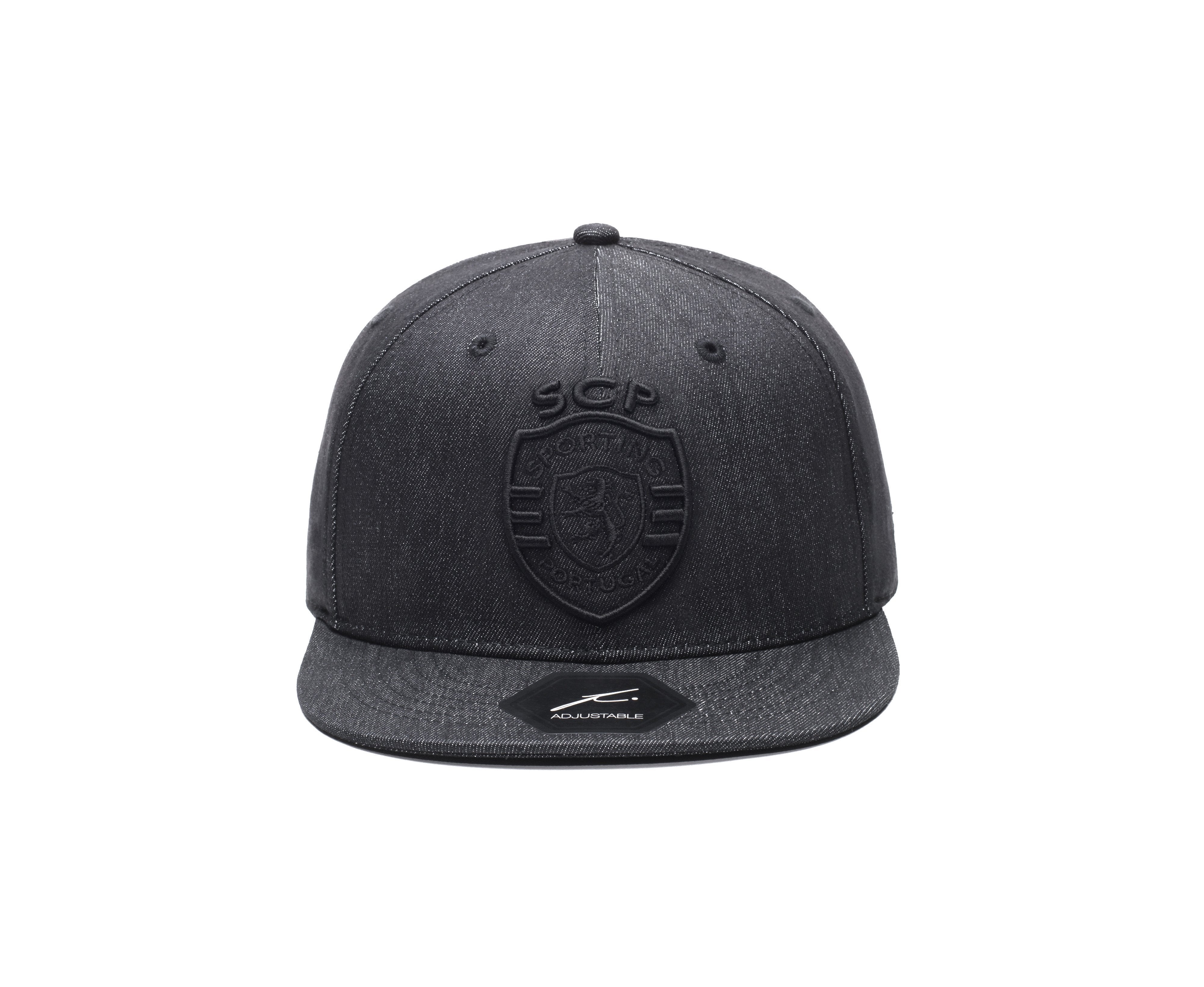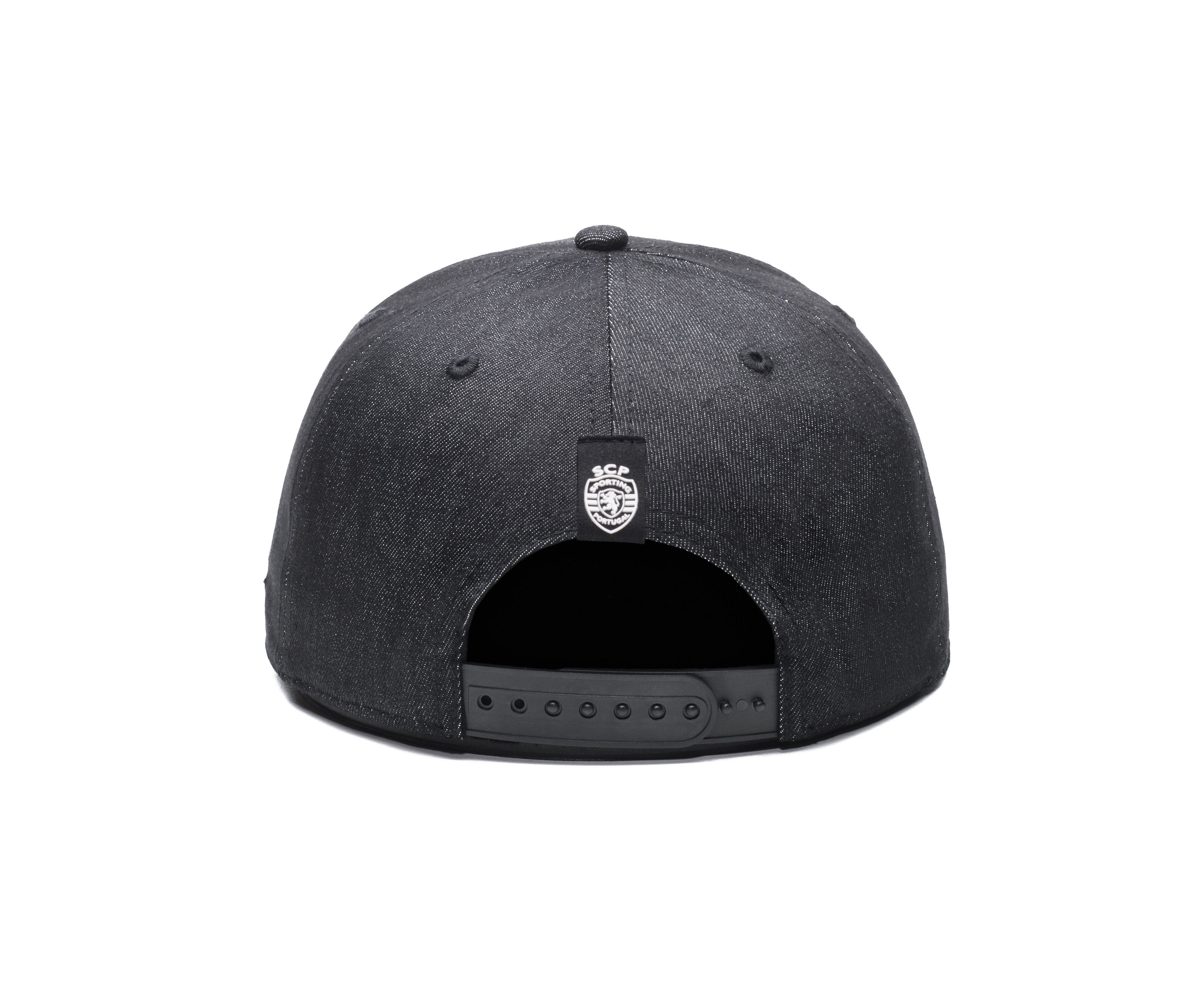Ce bonnet snapback en denim noir est doté du logo auto-appliqué de votre équipe avec une broderie 3D sur le devant et d’une étiquette détaillée du logo de l'équipe sur le dos.