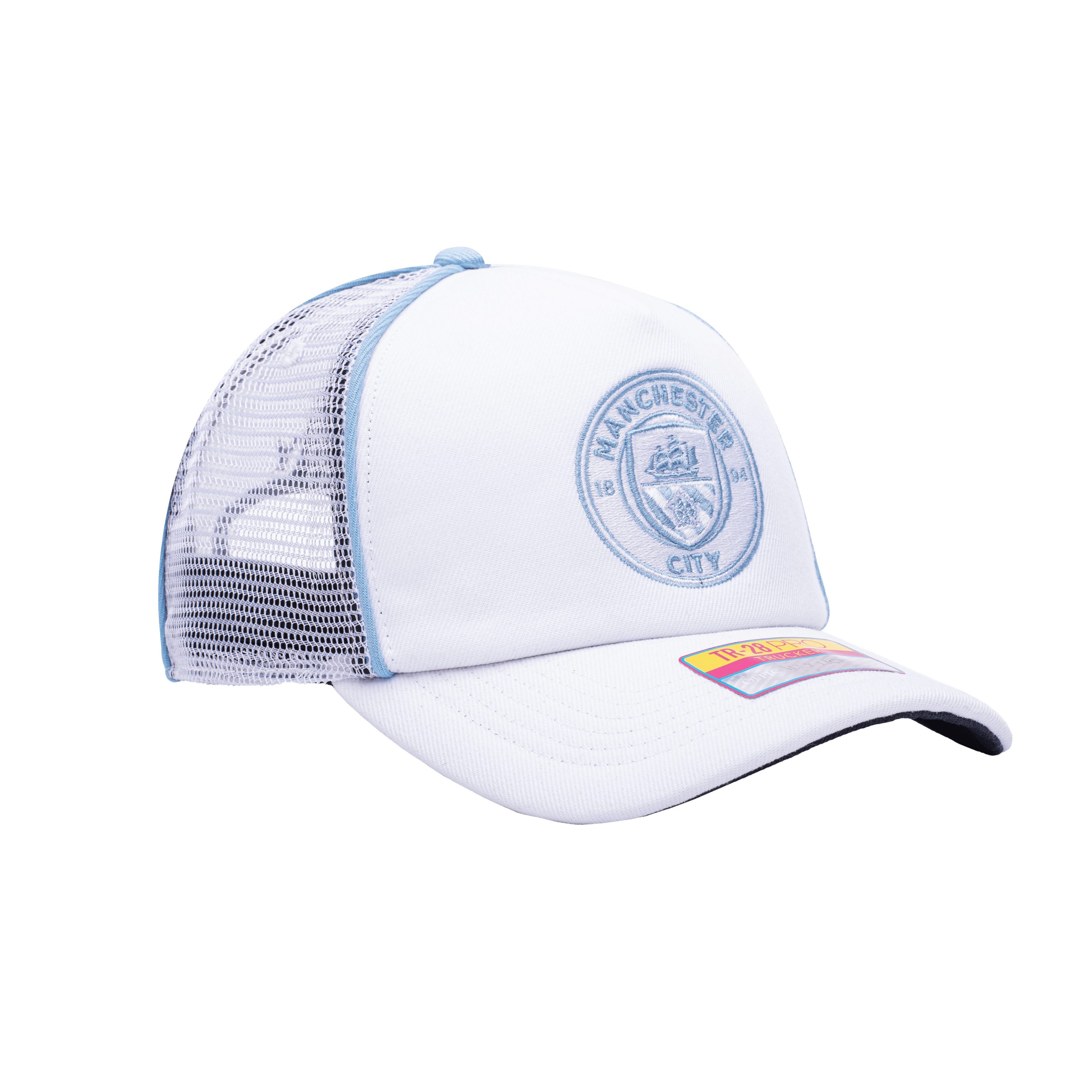 Based out of Manchester, England, show your support for your favorite Premier League club with the official licensed Manchester City Cali Day Trucker! This California-inspired trucker hat features a convenient snapback closure on a mesh back panel, and curved peak brim. This hat is unisex - it can be worn by both men and women!