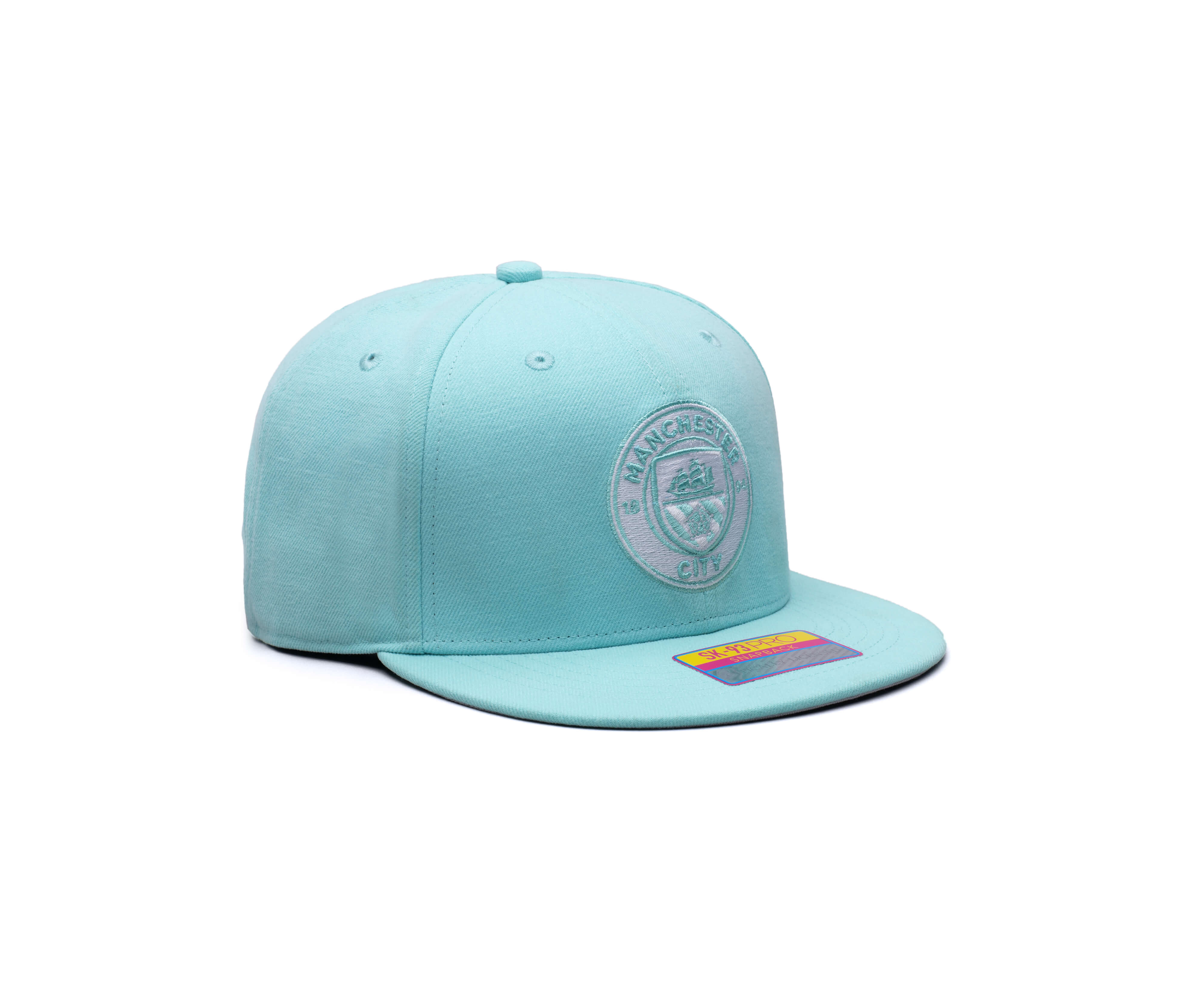 This hat is inspired by the kit worn by Manchester City in the truly momentous playoff victory that secured the team's promotion from the third tier of English football in 1999. Manchester City was faced with a 2-0 deficit against Gillingham FC at Wembley, but scored two goals in injury time and ultimately triumphed 3-1 in the ensuing penalty shootout.
